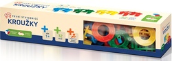 Stavebnica Krúžky je určená pre tie najmenšie deti. Pomáha precvičovať cit v prstíkoch a poznávať základné farby. Všetky stavebnice Krúžky sú vzájomne plne kompatibilné, takže ich môžete neustále rozširovať a dopĺňať o nové dieliky.Krúžková stavebnica pre najmenších obsahuje 32 dielikov v 4 farbách. Je vhodná už pre deti od 1 roku. Pomáha im precvičovať cit v prstíkoch a spoznávať základné farby.
