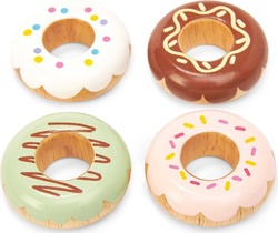 Set donutov z pevného dreva, každý z nich je dekorovaný inak. Balené v krásnom darčekovom boxe s oknom. Ideálny doplnok pre Luxusný čajový vozík TV324.