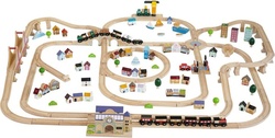 V balení nájdete 180 dielikov, s ktorými si deti užijú každodennú hru. Obsiahla zbierka kaučukových koľají, 2 vláčiky s magnetickými spojmi, medzi doplnkami patrí ruské koleso, 2 mosty, auto, nákladiak, vlaková stanica, žeriav, lode, budovy, obchodíky, domčeky a iné 3D prvky. Malí stavitelia a staviteľky zapoja svoju predstavivosť. Každý dielik je vyrobený skúsenými remeselníkmi z pevného a udržateľného kaučukového dreva. Hračka trénuje motoriku a deti nabáda k interaktívnej hre. Kompatibilný s vláčikodráhami ostatných výrobcov.