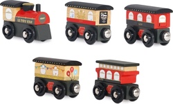 Vlak Royal Express je plný elegancie, skladá sa z piatich vagónov, ktoré je možné jednoducho spojiť vďaka integrovaným magnetom. Vlak hodný kráľovským výsostiam! Každý dielik je vyrobený skúsenými remeselníkmi z udržateľného kaučukového dreva, vlak je maľovaný sýtou červenou a má zlatisté detaily, ktoré mu dodávajú ten správny šmrnc. Pri spájaní vagónov si deti precvičia motoriku, vláčik ich podporí v interaktívnej hre. Hračka je kompatibilná s ďalšími drevenými vlakmi a vláčikodráhami.