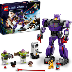 - Postavy z filmu – Súboj so Zurgom (76831) obsahuje 2 minifigúrky vrátane Buzza Lightyeara od Disneyho, figúrku LEGO® robotickej mačky a pohyblivého modelu robota