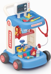 Vozík s kolieskami, lekárskym vybavením a príslušenstvom.