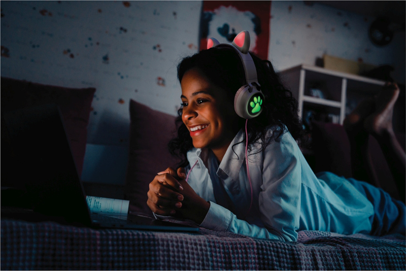 Predstavujeme praktické slúchadlá 2 v 1 vybavené bezdrôtovou technológiou aj možnosťou pripojenia pomocou kábla pre nerušený počúvanie hudby, sledovanie videí alebo hranie videohier. Deti ocenia roztomilý dizajn s mačacími ušami a meniacimi sa farbami LED svetiel, keď sú slúchadlá zapnuté. Technológia Bluetooth® 5.0 umožňuje bezdrôtové pripojenie do 10 m ku všetkým kompatibilným zariadeniam, ako sú smartfóny, tablety, audio a video prehrávače. Ďalšia možnosť pre prehrávanie hudby ponúka SD slot pre pamäťovú MicroSD kartu (karta nie je súčasťou balenia). Slúchadlá možno ľahko prepnuť do režimu káblového pripojenia pomocou kábla s 3,5mm jack konektorom (súčasťou balenia). Majú vestavěné ovládací prvky, ako sú prehrávanie/pauza, tlačidlá hlasitosti a možnosť prepínať skladby. Slúchadlá navyše majú integrovaný mikrofón pre prijímanie hovorov. Sú vybavené nastaviteľným hlavovým mostom, takže dokonale sadnú na každú hlavu a mäkkými náušníkmi pre maximálne pohodlie. Tieto slúchadlá sú robustné, skladacie a vyrobené z ľahkého materiálu.