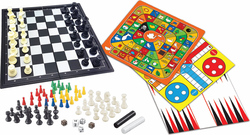Sada obsahuje nasledujúcich osem obľúbených stolových hier pre 2 až 6 hráčov: Šach, Dáma, Mlýn, Hadíky a rebríky, Husia hra, Malí kone (hra Ludo), Čínska dáma a Vrhcáby. Je to skvelý spôsob, ako si spestriť voľný čas s deťmi. Súčasťou balenia je magnetická šachovnica, ktorú možno jednoducho zložiť a dovnútra do plastového zásobníka uložiť všetky figúrky. Vďaka silnému magnetu sa každá figúrka ľahko prichytí k magnetickej hracej ploche. Vynikajúca priľnavosť dovolí zachovať pozície všetkých hracích figúrok. Tri obostranné plastové herné plány možno priložiť na magnetickú šachovnicu a vychutnať si akúkoľvek hru. Prevedenie herné sady je veľmi kompaktné, s rozmermi zloženej šachovnice 32 x 4 x 16 cm a rozloženej šachovnice 32 x 2 x 32 cm, je tak skvelou voľbou pre všetkých milovníkov hier počas cestovania (obostranné herné plány nie sú skladacie).