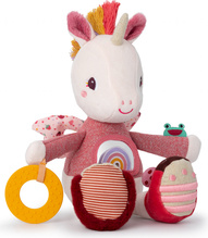 Farebná látková senzorická loptička v podobe plyšového leva Jacka je vhodná pre deti od narodenia. Vďaka svojmu okrúhlemu tvaru a veľkému množstvu držadiel, je táto hračka ľahko uchopiteľná, zabaví vaše dieťatko a zároveň mu pomôže stimulovať zmysly a jemnú motoriku. Loptička má rôzne potlače a materiály, štítky, stuhy, drevenú guľôčku a tiež silikónový krúžok, ktorý je ideálny na úľavu pri prerezávaní zúbkov. Možno prať na ručné pranie.