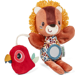 Maňuška s motívom leva Jacka je ideálna pre zábavu detí od 6 mesiacov. Jackova hlava má v sebe hrkálku, okrúhle zrkadlo na brušku a pri sebe má malého červeného papagája, ktorý šuští. Táto plyšový maňuška je preto ideálnou hračkou pre stimuláciu zraku a sluchu bábätka, ale aj jeho motoriky a fantázie. Možno prať v práčke na 30 ° C na jemný cyklus.