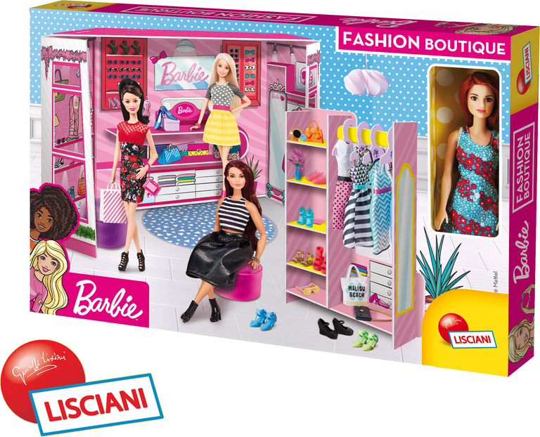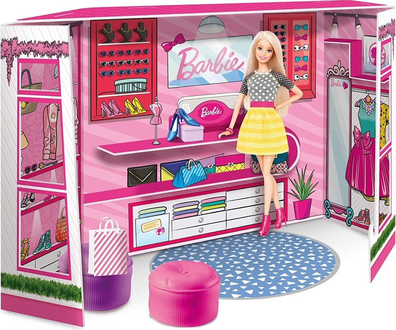 Bábika Barbie, pevné dieliky pre zostavenie butiku, doplnky