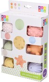 Súprava šesť mäkkých loptičiek rôznych tvarov a farieb pre rozvoj motoriky a stimuláciu zmyslov.