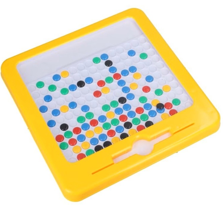 Pomocou priloženej magnetickej ceruzky sa umiestňujú farebné magnetky na potrebné miesta a tvorí sa tak ľubovoľný obrázok.