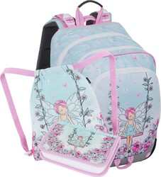 Jemný extra ľahký trojkomorový školský batoh pre prvákov s jemnou vílou. Deti a rodičia si ho zamilujú. Bezpečný chrbtový systém, reflexné prvky, sieťovina proti poškriabaniu, organizér, pútko na kľúče a veľa ďalších skvelých funkcií. Súpravu pre malú princeznú dopĺňa peračník a látková taška.