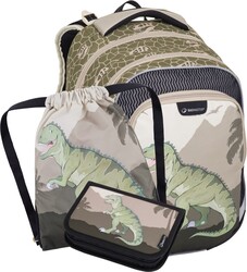 Školský batoh LUMI je ideálny pre malých prieskumníkov od 1. do 3. ročníka. Ponúka nielen priestor pre všetky školské potreby, ale aj ergonomický chrbtový systém na podporu správneho držania tela školáka. Motív dinosaura prinesie do školy kúsok praveku, zatiaľ čo reflexné prvky zaisťujú bezpečnosť na každom kroku. Rodina dinosaurov zahŕňa aj peračník na ceruzky a tašku na telocvik.Sada pre malých školákov od 1. do 3. triedy obsahuje