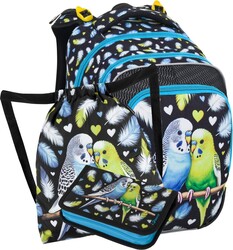Veselý batoh s papagájom pre dievčatká od 1. do 3. triedy. Váži len 0,98 kg, a pritom je priestranný. Má tri veľké priehradky a organizér na mobilný telefón, peňaženku a iné cennosti. Stojí na plastových nožičkách a v tme svieti pomocou reflexných prvkov. Súpravu pre malú princeznú dopĺňa peračník a látková taška.