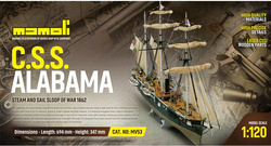 Stavebnica neplávajúceho modelu historickej plachetnej lode MAMOLI Alabama z roku 1862, v mierke 1:120. CSS Alabama, najslávnejšia loď americkej občianskej vojny, bola vojnová strecha postavená Johnom Lairdom Sonsom & Co. v anglickom Liverpoole v roku 1862 pre Konfederáciu. V balení sú drevené diely, lišty, kovania, lanové, plány atď.