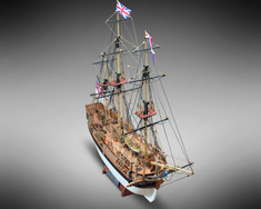 Stavebnica neplávajúceho modelu MAMOLI HMS Bounty v mierke 100 z roku 1787. Slávna fregata britského námorníctva je spätá s menom kapitána Bligh. Posádka sa vzbúrila, Christian Fletcher obsadil velenie a kapitána s niekoľkými mužmi vysadili na člne na šírom mori. V balení stavebnice sú drevené diely, lišty a množstvo kovania, lanoví, plány atď.