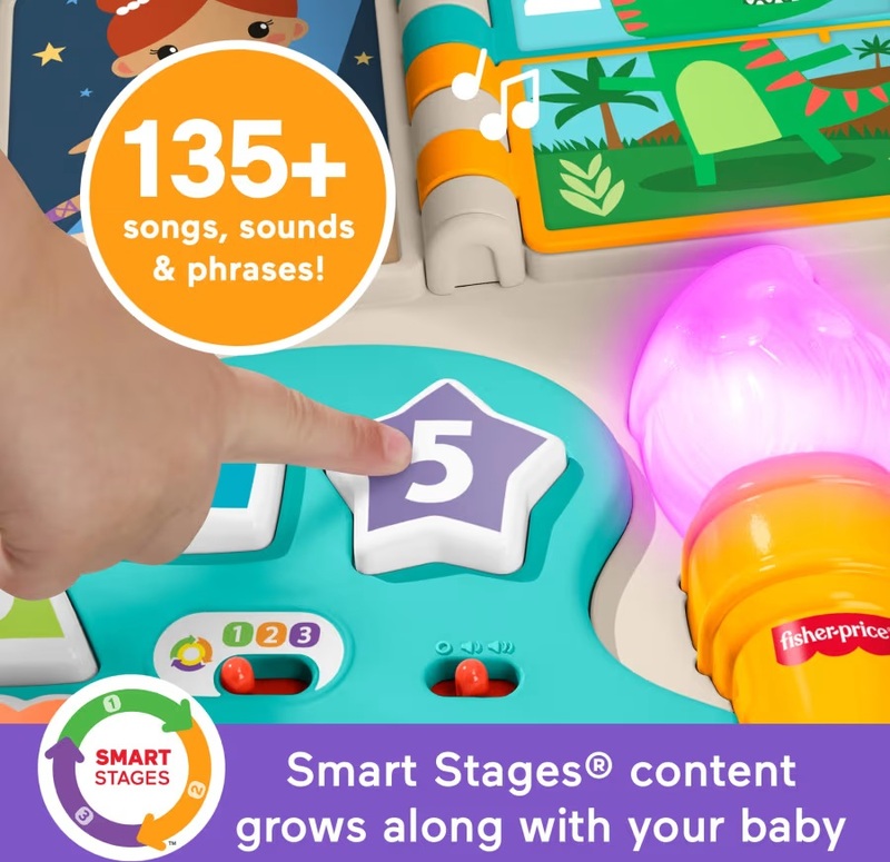 - Smart Stages: hračka roste s dítětem a nabízí více než 125 zvuků, frází a písní