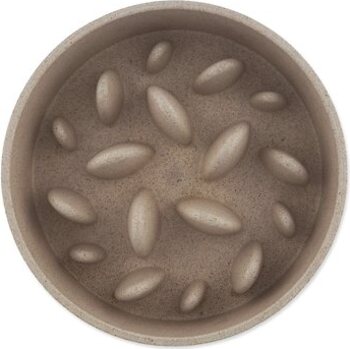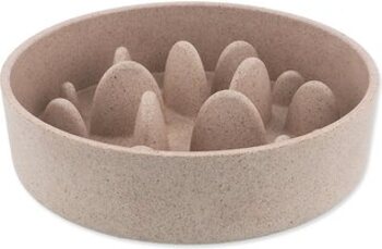 Štýlová miska v béžovom prevedení, ktorá vďaka špeciálnemu tvaru spomaľuje príjem krmiva a podporuje zdravé trávenie psa. Zabraňuje hltaniu, predchádza tráviacim ťažkostiam a robí z kŕmenia pokojnejší a zdravší rituál. Vyrobená z odolného ekologického materiálu, ktorý je pevný a ľahko sa čistí.