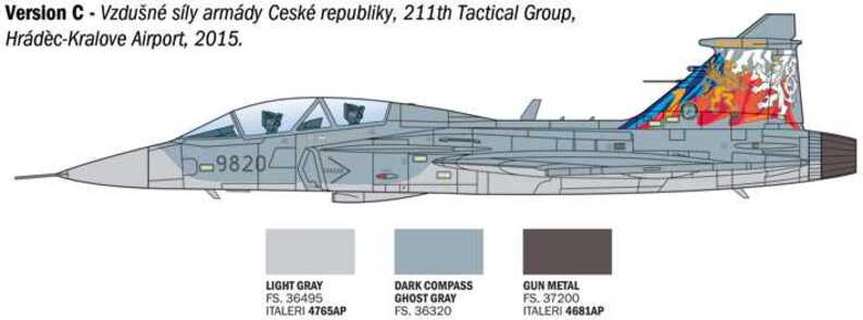 Model letadla ke slepení. Velikost: 1:72; 19,6 cm. Obtížnost: 2.ARCH SAMOLEPEK PRO 4 VERZE – BAREVNÝ NÁVOD