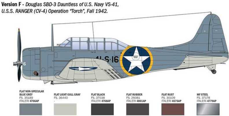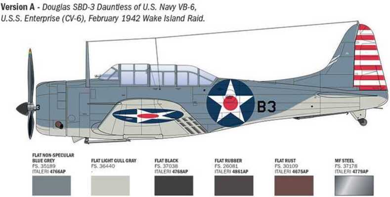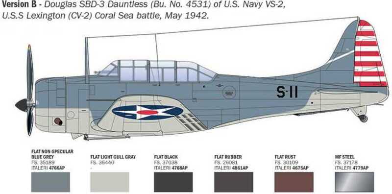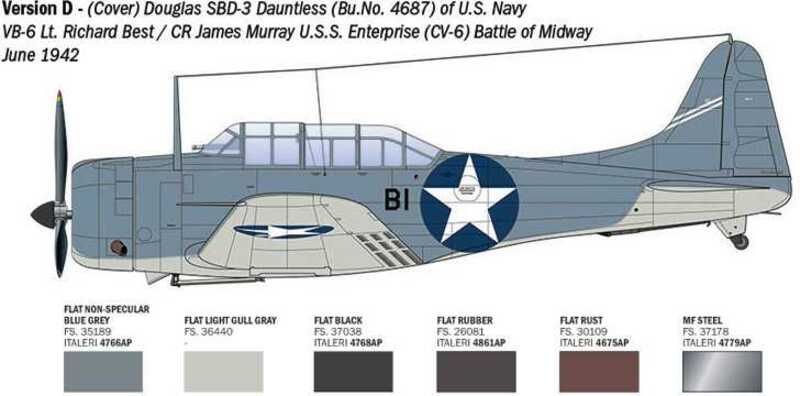 Douglas SBD „Dauntless“ byl jednomotorový dolnoplošník a nejrozšířenější palubní střemhlavý bombardér amerického námořnictva během druhé světové války. Do aktivní služby amerických leteckých jednotek vstoupil v roce 1941 a mohl být použit jak pro průzkumné mise, tak pro střemhlavé bombardování. SBD-3 byl skutečným hrdinou bitvy o Midway (červen 1942), zlomového bodu ve válce v Pacifiku, kde sehrál klíčovou roli při potopení japonských letadlových lodí. Poháněn hvězdicovým motorem Wright R-1820 Cyclone mohl dosáhnout maximální rychlosti 410 km/h. SBD-3 byl schopen nést téměř 2 000 kg bomb. Byl také vybaven dvěma dopředu střílejícími kulomety ráže 12,7 mm (.50 ráže) a dvěma dozadu směřujícími kulomety ráže 7,62 mm (.30 ráže). Posádky si jej vysoce vážily pro jeho robustnost a pevnou konstrukci.