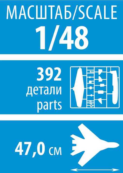 Model letadla ke slepení. Velikost: 1:48; 47 cm. Balení obsahuje: 392 dílků ke slepení.
