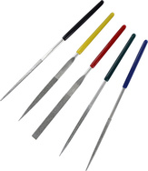 Päťdielna sada diamantových ihlových pilníkov Modelcraft s rukoväťou sú výborným nástrojom na kovové tvrdé súčasti. Potrebujete zapilovať kov, ktorý bežný pilník neberie? Použite tento pilník s vrstvou technického diamantu. Dĺžka nástroja 100 mm, 5 profilov, plochý, štvorcový, okrúhly, polkruhový a trojuholníkový.