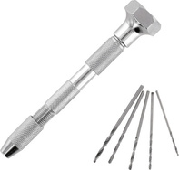 Modelcraft mini ručná vŕtačka s 5 vrtákmi na presné práce s malými vrtákmi. V balení sú vrtáky 1mm; 1,2mm; 1,4mm; 1,5 mm a 1,8 mm a 2 klieštiny s upínacím rozpätím 0-1,2 mm, & 1,3-2,4 mm a 0,8-2,0 mm, & 1,8-2,9 mm. Otočná rukoväť pre pohodlú prácu. Dĺžka 100mm, klieština 10mm.