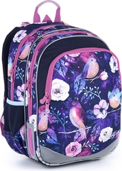 Ľahučká dvojkomorová taška pre dievčatá na prvom stupni s motívom vtáčikov, kvietkov a s fialovými trblietkami. To je parádná kombinácia pre školáčky na prvom stupni ZŠ. Navyše neváži ani kilogram a zhĺtne veľa nákladu!