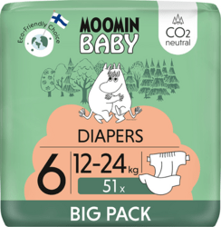 Moomin Baby 6 Maxi 12-24 kg (51 ks), eko plienky
