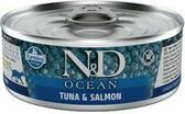 ND CAT OCEAN Adult Tuna Salmon je kompletné krmivo v konzerve, delikatesa pre mačacie milovníkov rybieho mäsa.