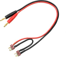 Nabíjací kábel s banánmi 4 mm a sériovo zapojenými konektormi Deans prístroj (samec), kábel 14AWG, dĺžka 30cm. Na pripojenie dvoch batérií.