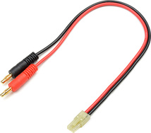 Nabíjací kábel s konektorom Mini Tamiya prístroj (samica) a pozlátenými 4mm banánmi, káblom 16AWG o dĺžke 30cm.