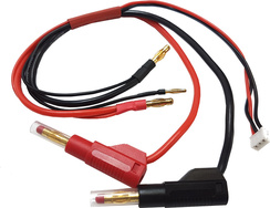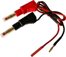 Nabíjací kábel s banánmi 4mm a párom konektorov s priemerom 2mm (samica červená +) a (samec čierny -).