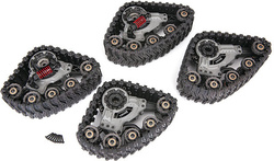Charakteristika: Nový pásový podvozok od spoločnosti Traxxas, dodá Vášmu TRX-4 neobyčajný, dramatický vzhľad a prejdete s ním akýmkoľvek terénom. Jednoduchá inštalácia tejto tuningovej sady pásov umožní rýchly štart a jazdu s nezastaviteľnou silou. Veľká kontaktná plocha pásu s povrchom poskytne výbornú trakciu v blate aj piesku. Každý zo štyroch pásov Traxx je konštruovaný pre maximálny, pritom hladký výkon. Nastaviteľné tiahlo udržuje pásy neustále napnuté, zatiaľ čo pojazdové kolieska umožňujú, aby sa pásy prispôsobovali nerovnostiam povrchu a dosiahli tak maximálnu trakciu. Tlmič naplnený olejom na každom páse riadi krútiaci moment, pomáha udržať pás prilepený k povrchu. Zadné pásy Traxx sú dlhšie, aby umožnili stúpanie aj do strmších svahov. Vyššia svetlá výška Pásy Traxx zvýšia svetlu výšku modelu a výrazne zväčšia nájazdový a výjazdový uhol, vďaka tomu prekonáte aj takmer kolmé a vysoké prekážky pred Vami. Pásy sú tiež širšie, čo dodá modelu TRX-4 ešte viac stability pri naklonení. Vodeodolné Na rozdiel od pneumatík s penovými vložkami, pásy Traxx nebudú absorbovať vodu. Čapy sú z kalenej ocele, guličkové ložiská s gumovým tesnením a klzné ložiská poskytujú bezstarostnú zábavu a minimalizujú účinky vody. Vlastnosti Prakticky nezastaviteľná v trakcie každom teréne, vrátane bahna, piesku a dokonca aj ľadu Kompletná montáž pásov v priebehu niekoľkých minút Olejové tlmiče na riadenie krútiaceho momentu Pojazdové kolesá sa prispôsobia povrchu Špeciálne navrhnuté jednodielne gumové behúne odolávajú odtrhnutiu Výrazne zvyšuje svetlú výšku a nájazdové uhly Navrhnuté pre zábavu v každom počasí Ložiská s tesnením na hnacích kolesách Klzné ložiská s nízkou údržbou na pojazdových kolesách Dlhší zadný pás Traxx pre stabilitu pri prudkom stúpaní Predáva sa ako súprava Vhodné pre všetky modely TRX-4 Patentované prevedenie Inštalácia pásov Pásy zvyšujú nároky na servo riadenia, preto je nutné inštalovať do modelu výkonné striedavé servo TRA2255, kovovú páku servaTRA8247X a externé zdroje BEC – TRA2262! Viac informácií nájdete tu. Pre ešte agresívnejší vzhľad je možné nainštalovať tuningovú súpravu vyššieho zdvihu TRX-4 Long-Arm Lift Kit (TRA8140, TRA8140R, TRA8140X). U modelov TRX-4 vybavených uzávierkami diferenciálov - udržujte predný a zadný diferenciál uzamknutý pre optimálnu trakciu a výkon. Pri modeloch TRX-4 vybavených dvojrýchlostnými prevodovkami - používajte vždy nízky prevodový stupeň. Obsah balenia: Balenie obsahuje 4 kompletne zostavené pásové podvozky na model Traxxas TRX-4, skrutky a kľúč stredového krytu. Odporúčame dokúpiť: Gumené pásy Deep-Terrain Pásový podvozok je možné vybaviť tuninogovými behúňmi Deep-Terrain s gumovými hrotmi, pre ešte lepšiu trakciu v najťažšom teréne.