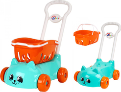 - Tyrkysový vozík s motívom mačky má odnímateľný košík.