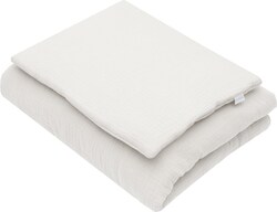 Mušelínový set New Baby obsahuje vankúšik a perinku s výplňou. Vhodný do postieľky, kočíka, alebo do prúteného Mojžišovho koša. Je ušitý z vysoko kvalitného mušelínu a vyplnený antialergickým vláknom. Set je mimoriadne mäkký a jemný k detskej pokožke, vďaka čomu je ideálny od prvých dní života. Všetky použité materiály sú testované a zaručujú vysokú kvalitu a dlhú životnosť.