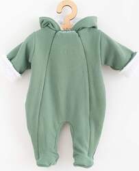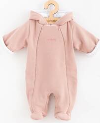 Zips je po celej dĺžke podšitý látkou, a tým je zamedzené prefukovaniu vetra na pokožku bábätka. Kombinéza má praktickú kapucňu, širšie pružné lemy na rukách a nohavičkách a celá vnútorná strana je zateplená nakrátko strihaným polarom, ktorý zvyšuje komfort nosenia a zaisťuje teplo.