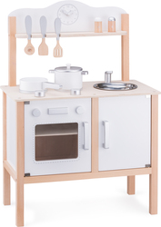 Táto krásne spracovaná kuchynka ponúkne deťom hodiny zábavy pri varení pre rodinu a kamarátov. Je vybavená realistickými prvkami, ako je odnímateľný drez, dvojplatničková varná doska, rúra s priehľadnými dvierkami, odkladacími policami a hodinami s pohyblivými ručičkami.
