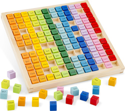 Skvelá pomôcka, ktorá naučí deti od 3 rokov hravou formou pochopiť základnú násobilku. Príklady sú zobrazené na farebných kockách a na ich zadnej strane nájdu deti výsledok. Hra je vyrobená z kvalitného dreva, použité farby sú netoxické.
