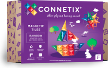 Balíček obsahuje veľké a malé štvorce, plus tri typy trojuholníkov v šiestich žiarivých farbách RAINBOW. Je to perfektný úvod do hry s dielikmi CONNETIX alebo skvelý doplnok k rozrastajúcim sa zbierkam magnetických dielikov.