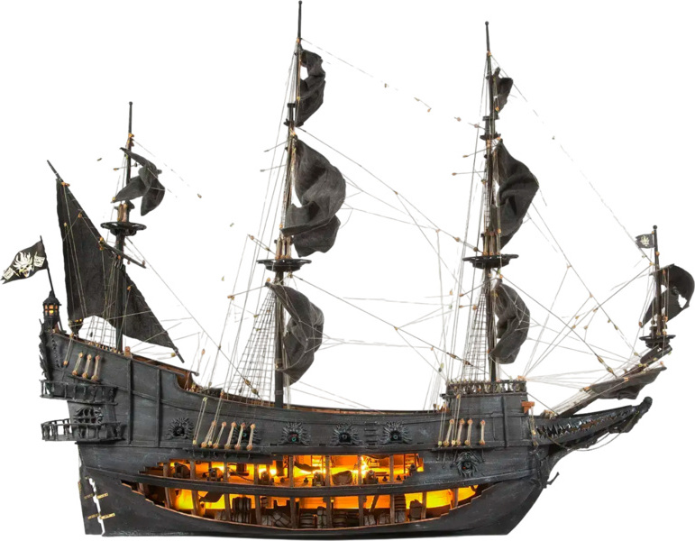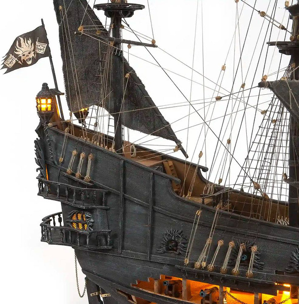 Temný mystický vzhľad modelu a otvorené podpalubie s vybavením v podobe del, munície, sudov, houpacích sietí a ďalších prvkov priamo vybízajú k inštalácii osvetlenia. Sada osvetlenia nádherne osvetlí podpalubie, zád a kajuty a paluba bude nasvietená od lucerny. Sada osvetlenia sa predáva samostatne, ale výhodou je, že návod s ňou počíta a prevedie vás ako inštaláciou, tak zapojením.
