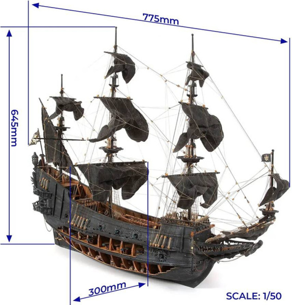 Stavebnica neplávajúceho modelu lode Flying Dutchman od značky OCCRE v mierke 1:50. Krásne spracovaný model s čiastočne otvoreným trupom a s vybaveným podpalubím inšpirovaný legendou o bludnom Holanďanovi. Stavba prevažne zo dreva, plošné diely sú presne rezané laserom. Trup je klasický rebrovaný. Plaňkovanie je jednovrstvé. Možnosť LED podsvietenia (predáva sa samostatne).