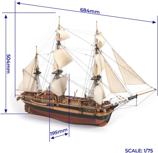 Stavebnica neplávajúceho modelu lode OCCRE HMS Erebus, v mierke 1:75. V balení sú diely na stavbu + plachty - laserom rezané diely, lišty, mosadzné fotolepy, lanoví a ďalšie. Stavebné výkresy a návod.