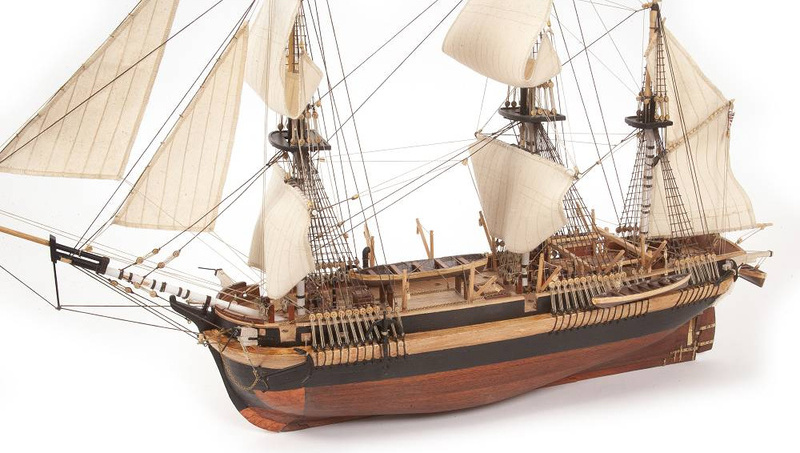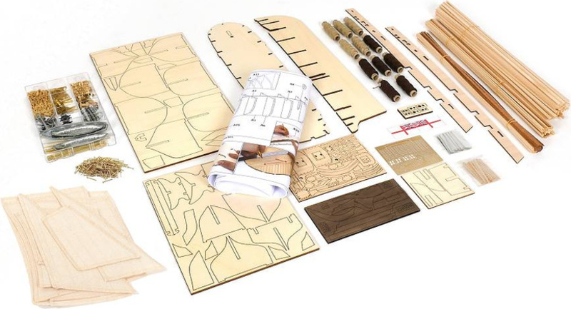 V balení sú diely na stavbu - laserom rezané diely, lišty, mosadzné fotolepy, lanoví a ďalšie.