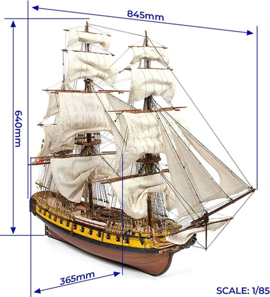 Stavebnica neplávajúceho modelu lode OCCRE N.S. Mercedes fregata, v mierke 1:55. V balení sú diely na stavbu + plachty - laserom rezané diely, lišty, mosadzné fotolepy, lanoví a ďalšie. Stavebné výkresy a návod.