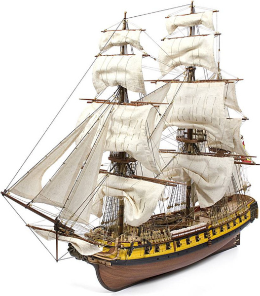 V balení sú diely na stavbu - laserom rezané diely, lišty, mosadzné fotolepy, lanoví a ďalšie.