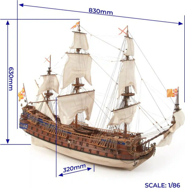 Stavebnica neplávajúceho modelu lode OCCRE San Felipe, v mierke 1:86. V balení sú diely na stavbu + plachty - laserom rezané diely, lišty, mosadzné fotolepy, lanoví a ďalšie. Stavebné výkresy a návod.
