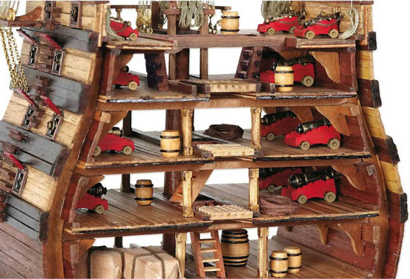 Pričný rez hlavným stĺpom mocnej lode Santísima Trinidad. Loď Santísima Trinidad bola postavená v Havane a spustená na vodu 2. marca 1769. Bola najväčšou vojenskou loďou 18. storočia, vyzbrojenou 130 delami. Po účasti v námorných ťaženiach konca 18. a začiatku 19. storočia sa naposledy zapojila do bitky pri Trafalgare pod praporom kontradmirála Cisnerosa, kde bola britskou flotilou zbavená stĺpov.