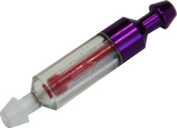 Palivový filter priehľadný 2-cestný má dĺžku 36,5mm, priemer 7mm, trubička pre hadičku priem. 5mm.