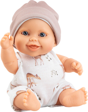 Los Peques Guillo bábika chlapček vo zvieratkovom bodíčku a čiapočkou na hlave.
