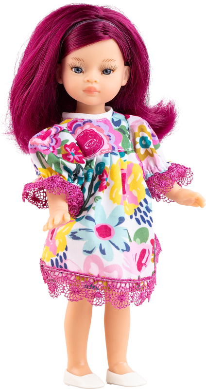Miniamigas Martina je romantická bábika s dlhými vlasmi vo vínovo-ružovej farbe.Oblečená v romantických šatách a ladiacich topánkach pôsobí nežne a dievčensky. Ideálna kamarátka pre malé princezné.