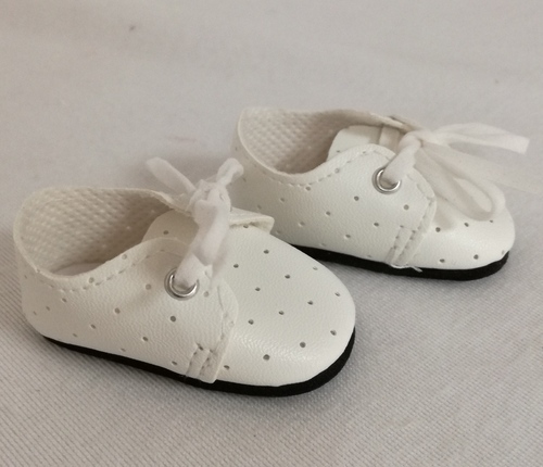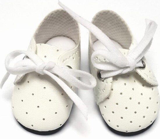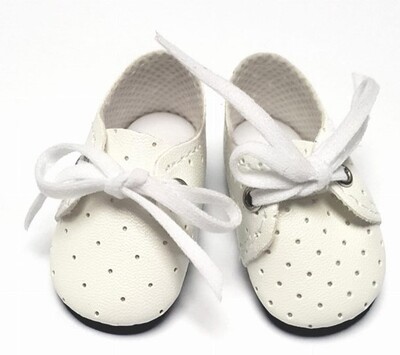 Biele topánočky na šnurovanie s bodkami -rozkošné topánočky pre bábiku o veľkosti 32 cm